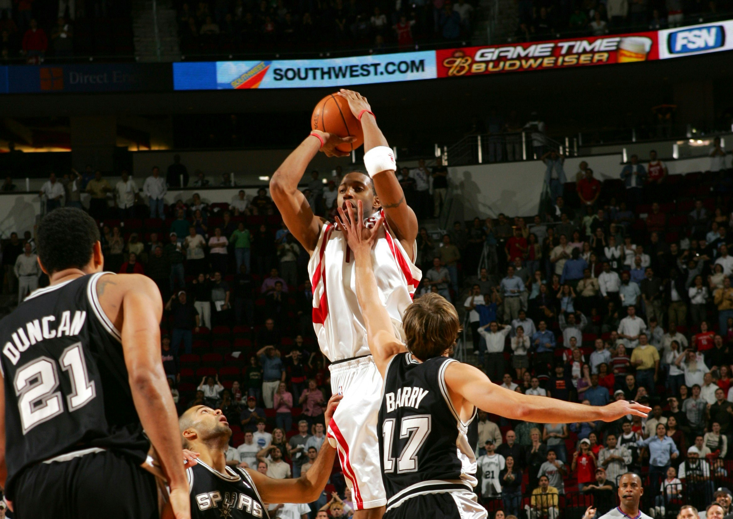 2004 yılının 9 Aralık günündeyiz... İlk ayını geride bırakan NBA normal sezonunda Houston Rockets; Shaquille O’Neal-Kobe Bryant-Phil Jackson üçgenindeki kavgayla dağılan Los Angeles Lakers’ın, bir önceki sezon konferans finali oynamasına rağmen takım içi çekişmelere yenik düşen Minnesota Timberwolves’un ve Chris Webber’ın sorunlu dizleriyle birlikte iniş çıkışlar yaşayan Sacramento Kings’in Batı Konferansı’nın tepesinde bıraktıkları boşluğu doldurmak için kuvvetli bir aday olduğunu gösteriyor. Yaz döneminde, yetenekli ama bir türlü potansiyelinin en üst seviyesine çıkıp orada tutunmayı beceremeyen -becerebilecek gibi de gözükmeyen- Steve Francis ve Cuttino Mobley karşılığında, Orlando Magic’den Tracy McGrady kadroya katılmış. Eldeki Yao Ming’i de hesaba katınca, NBA’de -özellikle o dönemşampiyonluğun geçerli formülü gibi gözüken iç-dış süper yıldız ikilisi elde edilmiş. O gün Toyota Center’da, birkaç yıldır istikrarlı biçimde Batı’nın en iyilerinden olan (ve sezon sonunda da üçüncü şampiyonluğuna uzanacak) Spurs’le oynayacakları maç, ‘ciddi düşündüklerini’ göstermek için mühim bir fırsat. Maçın, ABD’deki NBA yayıncılarından TNT’nin meşhur perşembe programı dahilinde yer alması boşa değil...