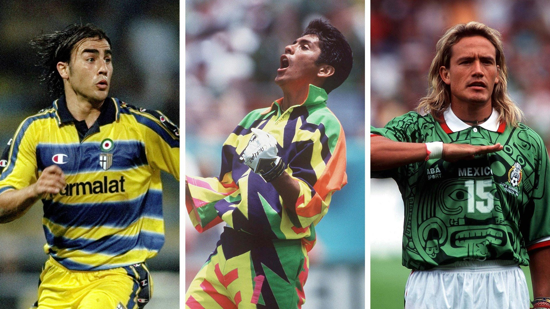 1990'larda forma tasarımcıları normalden on kat serbest takıldıysa, kaleci forması tasarımcıları yüz kat serbest takılmış olmalı. Ana akım formalara giren çılgın renk ve desenler kaleci formalarında çok daha ağır basıyordu, sanki ana formalarda kabul görmeyen bütün fikirler kaleci formalarında denenmişti. Bu yönde yapılan bir Google araması sizi rengârenk görsellerle başbaşa bırakmakla birlikte, bir ismi sürekli karşınıza çıkaracaktır: Jorge Campos. Meksika'nın kısa boylu fakat atik kalecisi, sık sık ceza sahasının dışına çıktığı riskli oyun tarzıyla ve zaman zaman forvette oynamasıyla tanınıyordu. Bu renkli karakterini ise çoğu kendi tasarımı olan aşırı bol ve fosforlu formalarla tamamlıyordu. Campos önce bir arkadaşıyla beraber bu tasarımlarını üretirken, namı yayıldıkça büyük üreticiler onla ortaklığa başlamıştı. Campos'un kariyerinden seçecek çok forma var ancak 94'te Meksika'nın gruptan çıkmasını sağlayan Serbest İrlanda ve İtalya maçlarında giydiği bu forma, gerek tasarımı gerekse Campos'un kariyerindeki önemiyle bir adım öne çıkıyor.